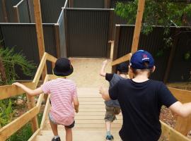 Work your way through the giant split-level maze, with a fun fireman’s pole and 2 flights of stairs adjoining the 2.8m drop from top to bottom tier. 135m direct route from start to finish, or extend the experience to 537m by finding quizzes and riddles at each of the 17 dead ends.