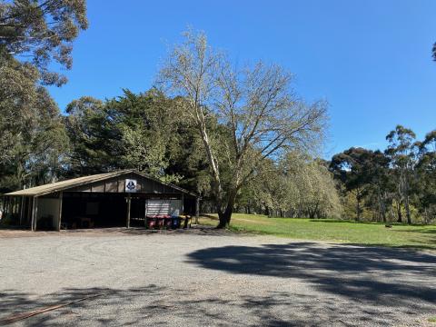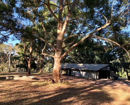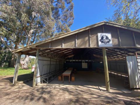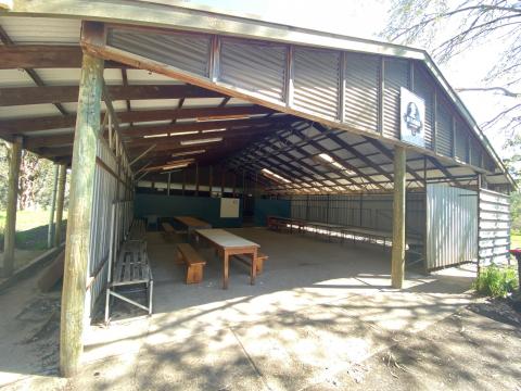 A large shared dining hall provides shelter and comes complete with tables, sink and BBQ facilities.
