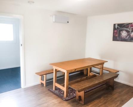 Stephen's Chalet sleeps up to 4 in one double and bunk bed (BYO bedding, unless pre-arranged) in one small bedroom that is separate from the 'family room' (combined kitchen and dining).